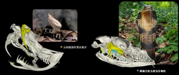蛇类分有毒蛇和无毒蛇,毒蛇根据上颌骨牙齿(上颌齿)形态结构又分为管牙毒蛇、前沟牙毒蛇和后沟牙毒蛇。毒性也有强弱之分。
