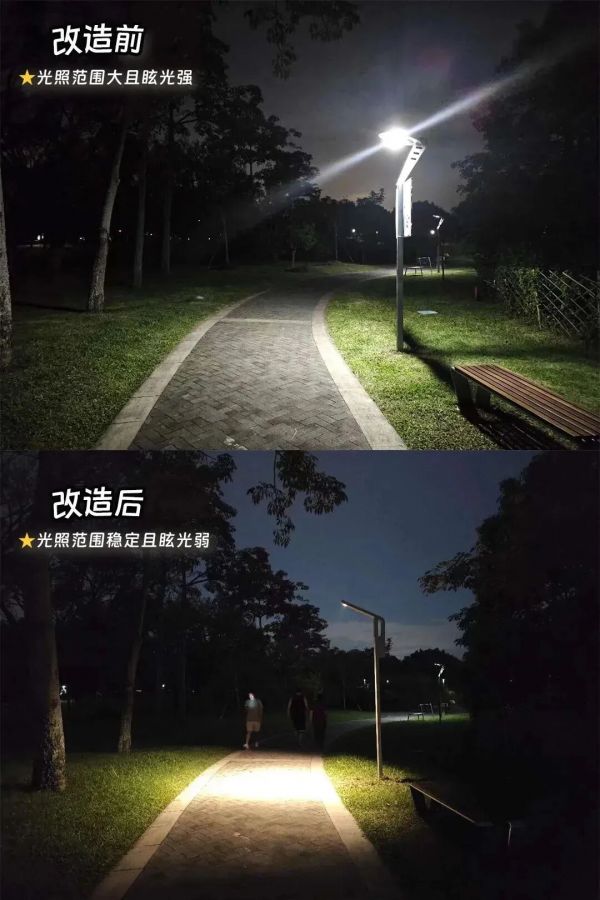 改造后的灯光更柔和,对草坪树林的影响也更小。受访者供图