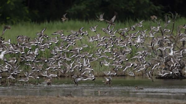 翘嘴鹬、蒙古沙鸻、铁嘴沙鸻、半蹼鹬、黑脸琵鹭、反嘴鹬、黑翅长脚鹬、苍鹭等。