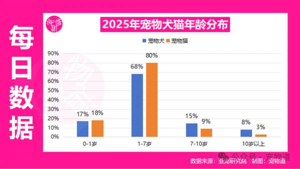 根据亚宠研究院的数据,目前我国7岁以上犬占比约23%,猫占比约12%,相较于美、日等成熟市场40%-50%以上的占比,我国宠物年龄结构仍显年轻,老龄宠物市场真正的大幕才刚刚拉开。预计到2027年,行业将进入加速发展周期,由老龄化催生的保健品市场需求将迎来爆发式增长。
