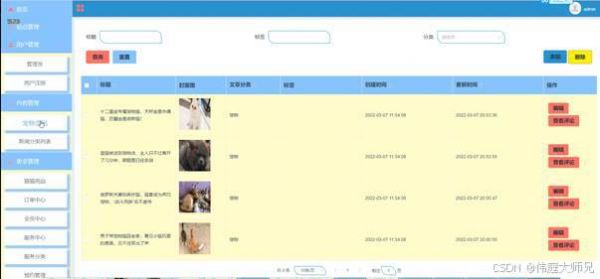 图5-8宠物资讯列表管理界面