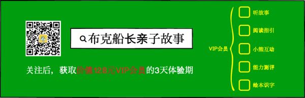微信搜索「布克船长亲子故事」,关注领取价值128元VIP会员的3天体验期。
