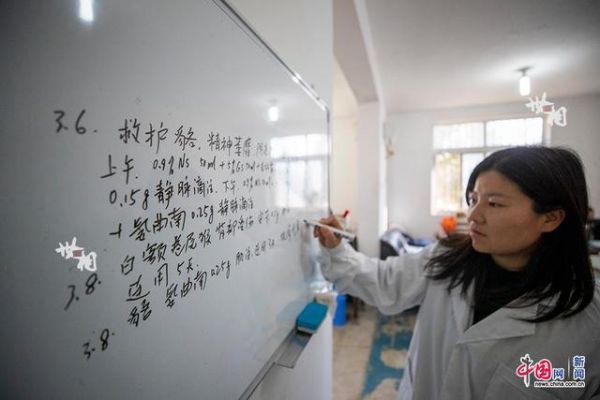 动物救护站的工作人员王艳将动物救助治疗的情况详细记录在白板上,方便工作交接。