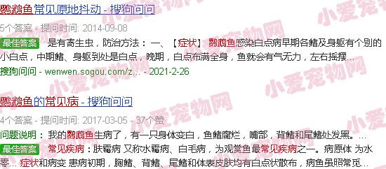 1.白斑病:一种传染性极强的寄体外寄生病。【症状】鹦鹉鱼感染白点病早期每个鳍和身体都有单独的小白点,中鳍和身体充满白点,后期全身白点遍布,鱼会出现虚弱。