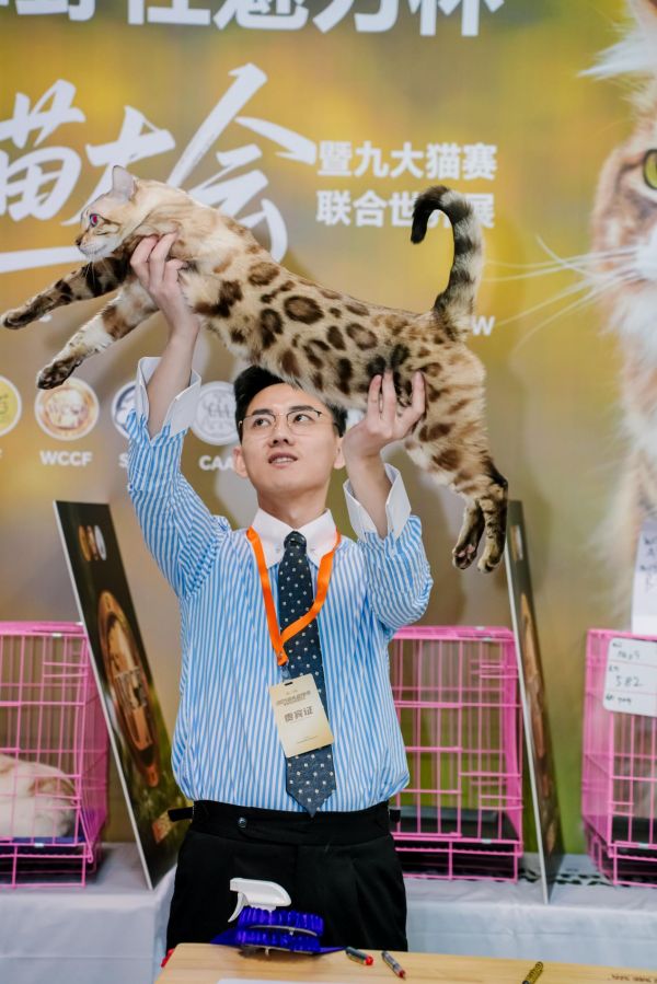 来自俄罗斯、中国等 7国的裁判团队,依据头型比例、被毛质感、神态气质等国际标准逐猫评审。聚光灯下,布偶猫以飘逸长毛展现 “贵族姿态”,缅因猫凭霸气体型彰显野性气场,德文卷毛猫则用灵动眼神频频贡献表情包,每只猫咪的步态展示都伴随快门声此起彼伏。