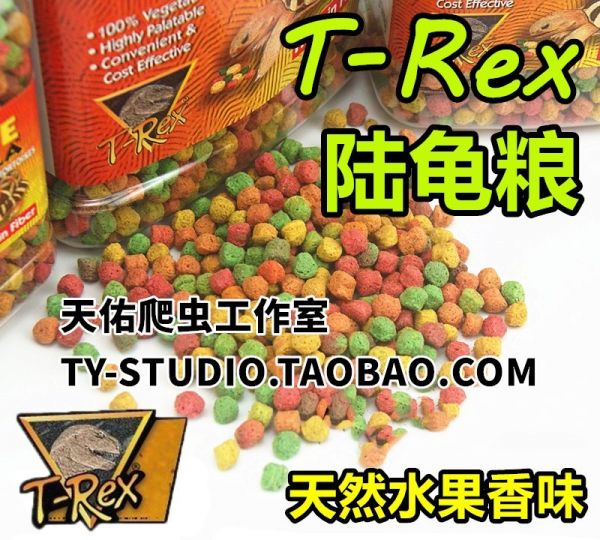 1、T-rexTortoiseDryFormula水果味龟粮。以蔬菜为主要成分,粗蛋白含量不低于13%,粗脂肪不低于3%,粗纤维最多10%.花花绿绿的外貌,适口性好,陆龟较容易接受。价格比ZOOMED高一截。规格为340克和680克。
