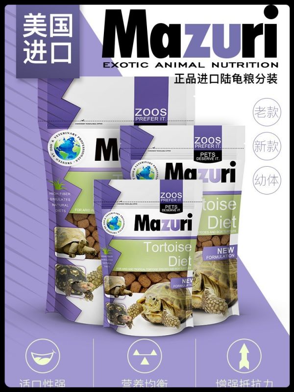 品牌背景:美国的品牌,马祖瑞适口性好,很多陆龟都能接受。主要生产陆龟粮、水龟粮、蜥蜴粮等。性价比高,国内很多陆龟饲养者也会选择马祖瑞陆龟粮。油性较大,泡过龟粮的水会有点浑浊。专为动物园动物设计并为之使用的饲料,涉及鸟类,大象,貂,鹰,小宠类,爬行类,鱼类,昆虫类,袋鼠,灵长类动物等。