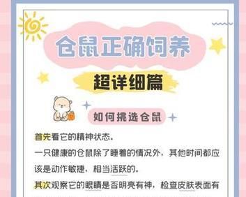 养宠物已成为现代生活中的一种流行趋势,而仓鼠作为小巧可爱的宠物备受青睐。然而,对于刚开始养仓鼠的新手来说,了解如何正确照顾它们是非常重要的。本文将为您介绍养仓鼠的注意事项和技巧,帮助您成为一名合格的仓鼠主人。