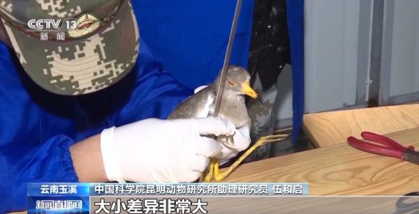 在新平县境内,金山丫口鸟类监测环志站是我国西南地区重要的鸟类环志标准站。工作人员会对鸟类进行物种鉴定、体长测量、拍照记录,佩戴好环志或定位装置后放归自然,后续再通过技术手段研究候鸟的迁徙规律。环志站内,中国科学院昆明动物研究所博士伍和启,正带队给鸟类佩戴环志。大杜鹃,是他们这次的主要研究目标。