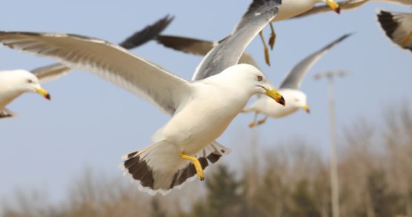 在大连,一年四季大家都可以见到黑尾鸥,一年四季在一个区域能见到的鸟叫留鸟,但是在不同季节看到黑尾鸥的数量其实是不一样的。春季他们去哪里呢?它们去到无人岛繁殖去了,大家在海边看到有一些鸟是灰灰的,体型跟海鸥差不多的,它是黑尾鸥的未成年鸟。鸟在一生中要经过很多很多次的换羽,成年鸟是这种典型的黑尾鸥样态。