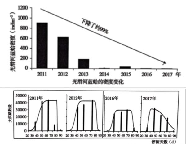 2017年冬天,是1949年以来最冷的冬季之一。寒冷天气对鸭绿江口滩涂湿地上的蛤蜊种群造成了重大影响,蛤蜊数量仅为过去6年平均水平的5%。为了防止这种情况的恶化,科学家们开始探讨食物补充措施,2018年给大滨鹬进行“加餐”,补充了光滑河蓝蛤。