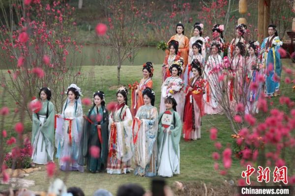 图为活动现场。卢虹灵 摄 活动现场,“十二花神”与“百花仙子”带来花朝盛典,还原请花神、祈福、行簪花之礼等花朝仪式;花神巡游由马队方阵,“十二花神”及穿着汉、唐、宋、明等不同时期中华民族传统服饰的百名同袍等组成,邀请现场游客共同巡游赏花、沉浸互动。此外,园区筹备了国风表演、花朝知识问答、花卉猜谜、传统民俗互动、国风集市等精彩活动。