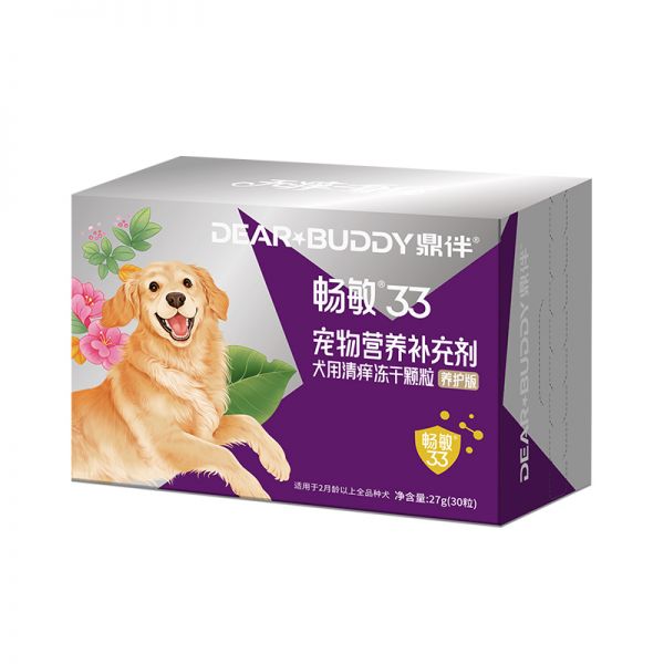 核心产品:畅敏33系列(犬用清痒颗粒养护版),添加蛋黄IgY抗体,结合狗狗体内瘙痒因子,针对性缓解过敏与特异性皮炎引发的皮肤瘙痒;原料含蛋黄、鸡肉粉、南瓜粉等天然成分,无化药添加,长期使用无负担。