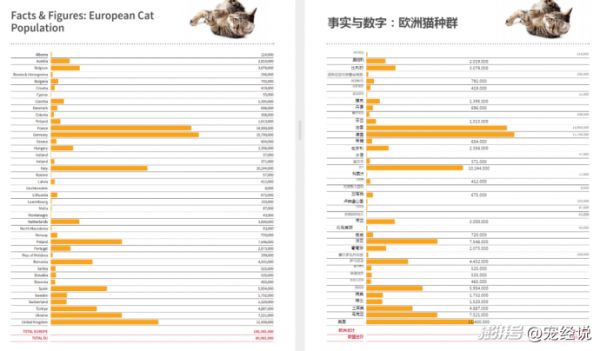家庭养宠的比例:欧洲整体看,26%的家庭养猫,25%的家庭养狗。但国家之间差异明显。