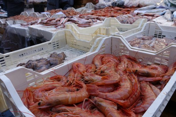 就在卡塔尼亚大教堂广场旁边,也属于城中心,很好找,大教堂广场对面是一排咖啡馆,咖啡馆尽头有个喷泉,喷泉后面那一大片就是鱼市,其实到了大教堂附近就能闻到海鲜的味道,顺着味道走就到了。
