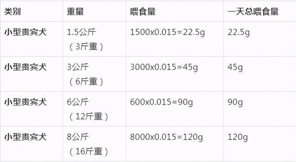 注意:有些营养成分相对低一些的,则需要体重的2-5%,另外也根据狗狗的活动量,年龄等实际情况调整。