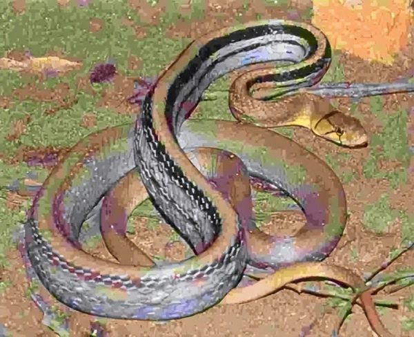 主要分布在印尼、马来西亚、缅甸和我国南方等广大地区,俗名白花锦蛇,国家“三有”保护野生动物。背面灰色或黄色,枕部有一黑色横纹,因头侧有三条辐射状黑线纹而得名,别看三索锦蛇经常侧扁着半个巴掌大的颈脖发出眼镜蛇般呼呼呼的声音,其实它也是无毒蛇。 目前宠物市场上三索锦蛇的身影也是比较常见的,体全长较大者可达两米,以蛙、蜥蜴、鸟、鼠为食。