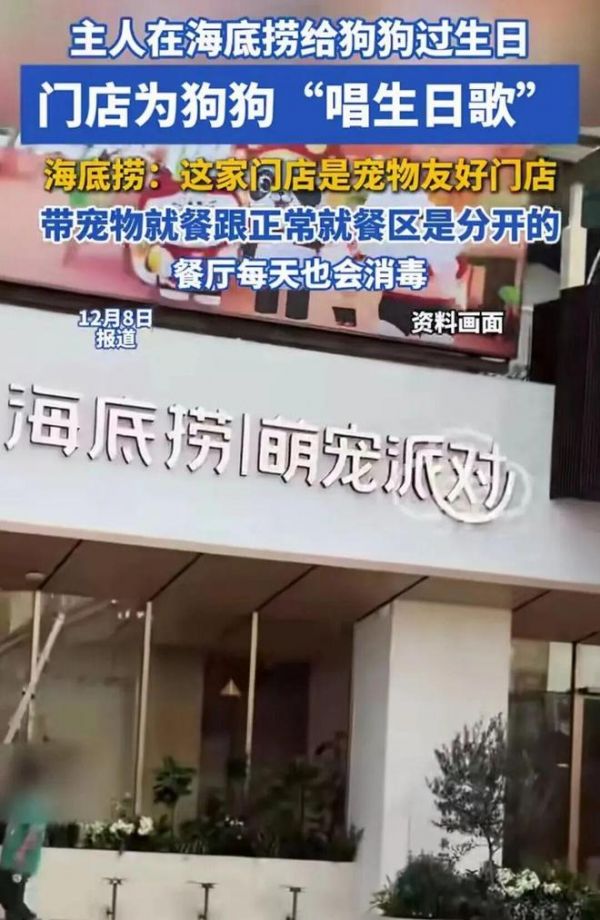 近日,广东深圳一家海底捞餐厅,几名店员围着一条白色宠物狗大唱生日歌的视频引发了网友们的热议。