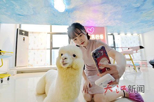 在南昌市某“萌宠吧”,一名女孩和萌宠合影。江西日报全媒体首席记者李劼摄
