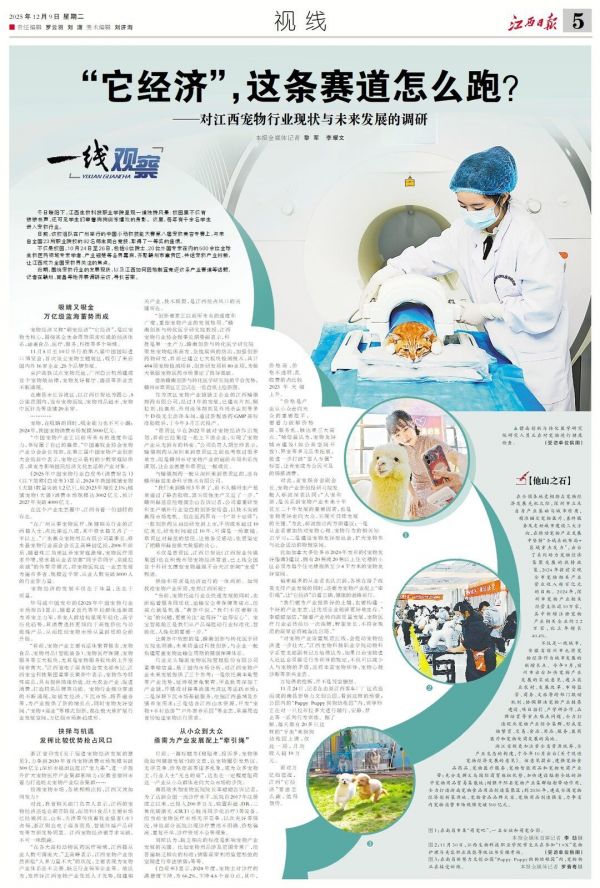 不仅是章贡区,江西日报社(江西报业传媒集团)也在积极布局宠物经济赛道,已上线全国首个科研支撑型宠物融媒平台大江新闻“宠爱”频道。