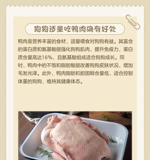 作为宠物主人,我们都想给我们的狗狗提供美味又健康的食物。而狗烧的鸭腿正是一道受狗狗欢迎的食谱。然而,要让鸭腿完全煮熟并保留营养,需要一些技巧和正确的方法。本文将为您介绍如何煮狗烧的鸭腿,让您的狗狗爱上您的烹饪。