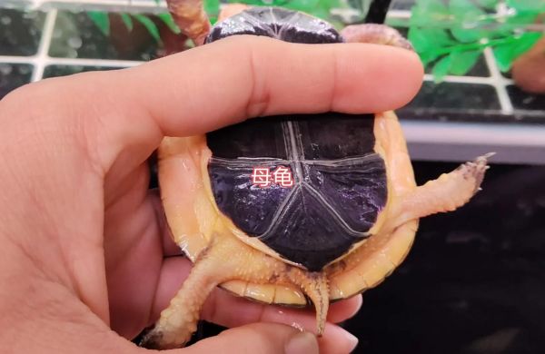 黄缘龟区别公母,可以通过尾巴排泄孔位置、根部粗度判断。公龟尾巴排泄孔距离根部远,排泄孔在背甲边缘外。而母龟排泄孔靠近尾巴根部,在背甲边缘里变。像这只安缘闭壳龟尾巴根部粗像是公龟,但是个头小,还不能判断100%确定是公龟。