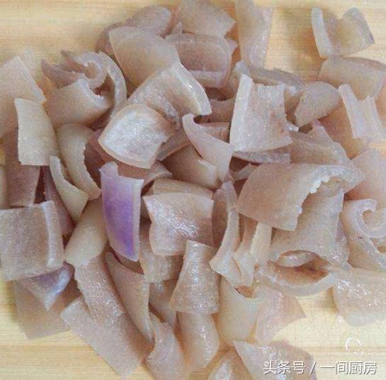切成2厘米长宽大小,为什么一定要现在切片呢,因为晒干的猪皮你是切不动的。