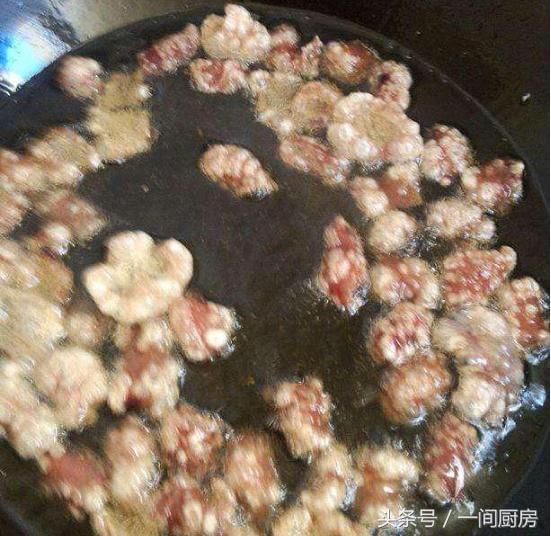 锅里下菜籽油,要多放些,炸完猪皮后,油还可以继续炒菜。