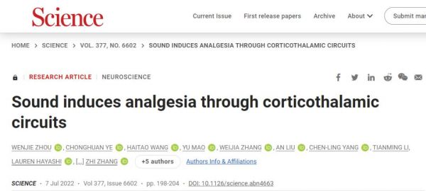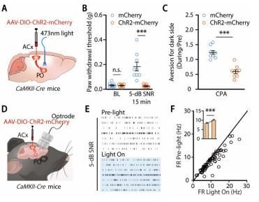 然而,声音能够调节疼痛,其背后的大脑机制是什么呢?先前的研究并未解释这一点。最近,由中国科学技术大学、安徽医科大学以及美国国家牙科和颌面研究中心(NIDCR)的研究人员领导的一支研究团队,在小鼠动物模型上进行了实验,确定了声音调节疼痛的神经机制,并发现声音的镇痛效果取决于小鼠相对于环境噪声的信噪比。研究论文于7月7日发表在《Science》上。
