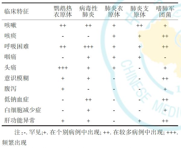 ▼鹦鹉热衣原体与其他病原感染临床特征对比