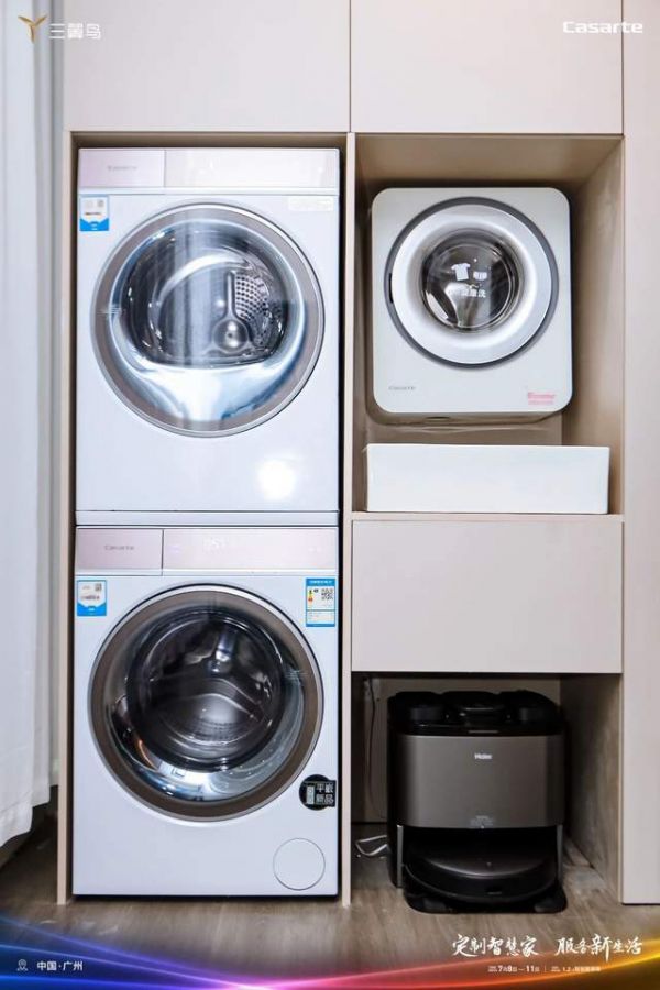看似严丝合缝浑然天成的阳台洗衣场景,需要的是一条龙式的规划考量。从装修初期,就需要为阳台空间预留相应的水路电路。“洗扫联动”的智慧解决方案则有强大的识别和控制技术支持。