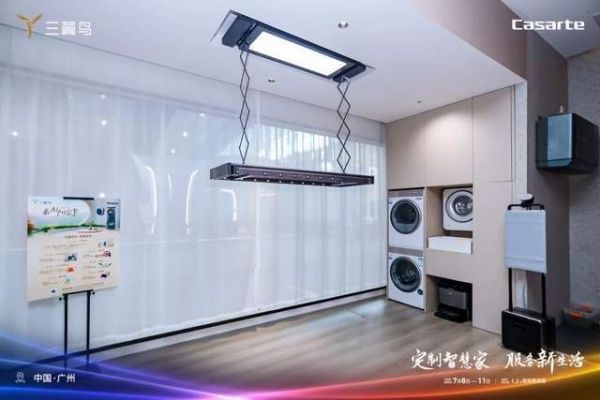 三翼鸟在今年中国建博会(广州)上的展位,就是这样一个未来感十足、又贴心而真实的空间。三翼鸟用户体验负责人沈威先生向家居新范式介绍了阳台洗衣场景的智能化体验。