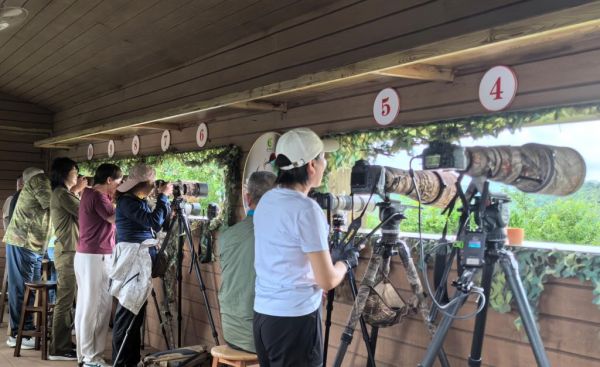观鸟爱好者在福建省明溪县一处观鸟点拍摄。(受访者供图)