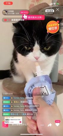 而许多网友来看直播,也不仅仅为了买东西,直播弹幕里的围观用户中,很多都是店铺的老朋友,他们可以叫出直播的宠物的名字,也会为自己喜欢的小明星打call:“今天法妹在吗”“零食给胖琪吃点”……有网友表示这种感觉很像养了一个“真实的电子宠物”。