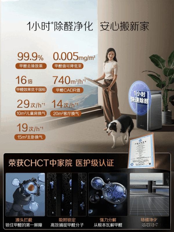 特设的除甲醛功能,有效净化室内空气,守护家庭健康。当家中有新装修或家具时,能够迅速去除有害气体,让您和家人享受更清新的生活环境。尤其适合面积达100㎡的大空间,成为居家必备良品。