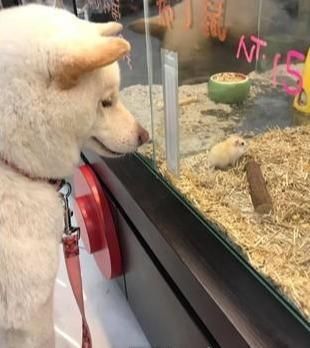 在我们眼中,仓鼠是种萌萌哒又人畜无害的可爱动物,看到都不禁想养一只,不知道仓鼠在狗狗眼里是不是也这么可爱?一主人带着狗狗去宠物店买零食,结果狗狗一直坐在仓鼠区里盯着仓鼠,整整看了一个小时都不肯走,吓得里面的仓鼠都瑟瑟发抖。狗狗:可爱仓鼠要跟我回家吗?