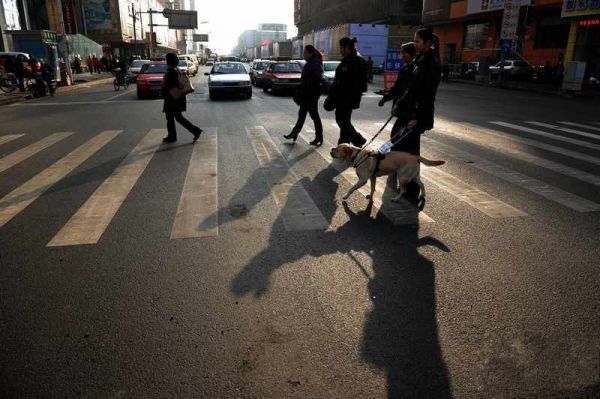 另外,也会训练导盲犬服从一些指令。比如行进的方向,一般怎么走都是有视力障碍者来发出的,而导盲犬只是充当眼睛,告知视力障碍者路况或者障碍物等,直到视力障碍者做出行进的指令,导盲犬才会带领视力障碍者继续行进。