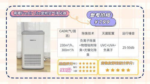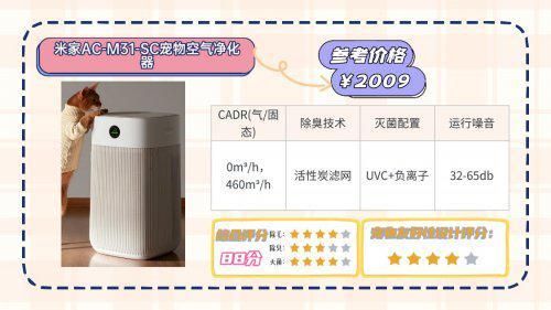 综合配置更适合多猫多狗家庭、空气异味较重或室内浮毛密度高的环境,属于针对性功能突出的宠物空气净化产品。