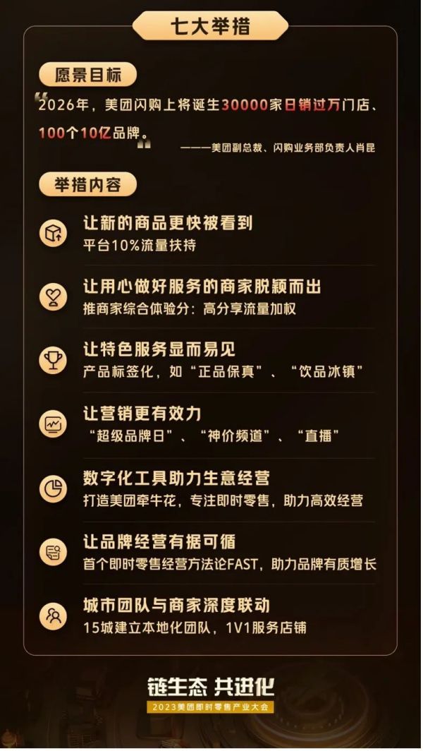 这样的趋势,也对即时零售领域的头部平台提出了更高的要求。以美团为例,目前,美团闪购正从流量扶持、城市化运营、线上平台运营、营销推动和数字化降本提效五个方面进行助力赋能,帮助门店和品牌更好地在即时零售领域取得成果。