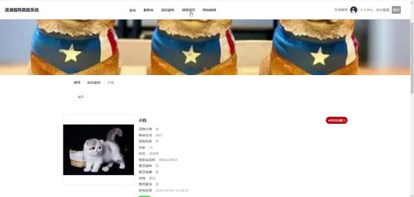 基于Java+SpringBoot+Vue流浪猫狗救助系统(源码+LW+调试文档+讲解等)/流浪动物保护/流浪猫狗收养/宠物救助中心/流浪猫狗安置/动物福利组织/流浪猫狗庇护所/流浪猫狗喂养