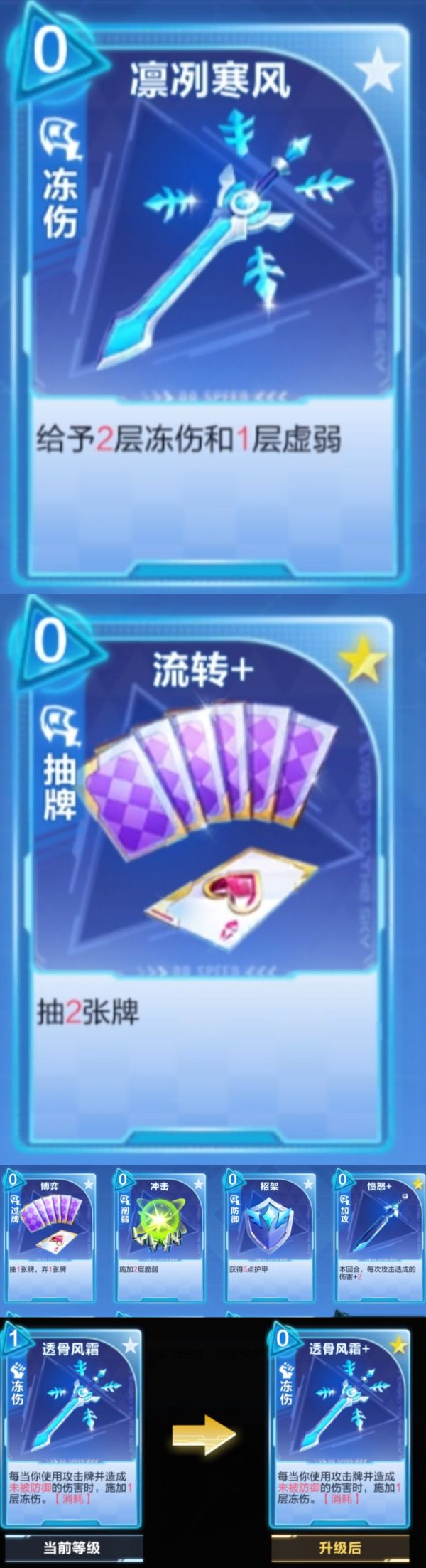 蓝色卡牌推荐:凛冽寒风、流转、博弈、冲击、招架、愤怒、透骨风寒。