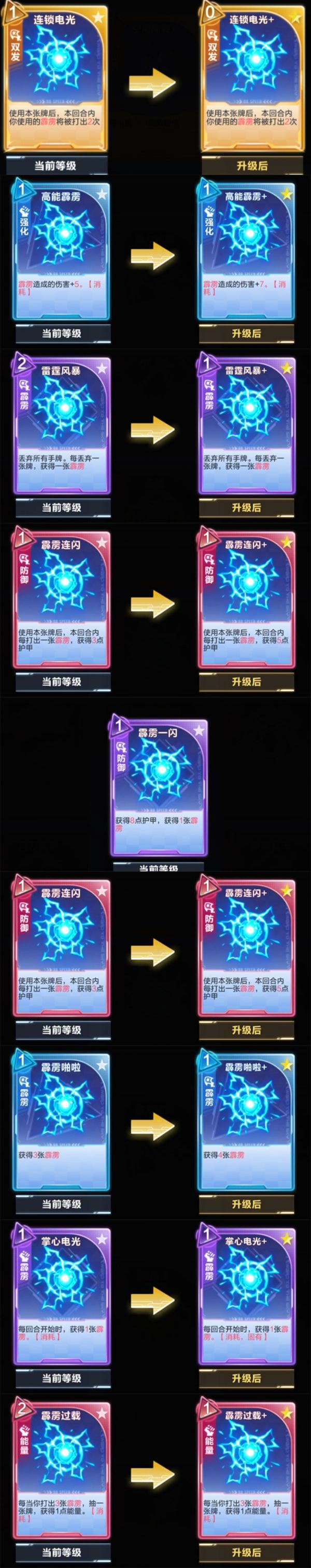 第一种霹雳流:以爆发为特色,高能霹雳堆叠单次伤害,连锁电光增加次数后,借助雷霆风暴将全部手牌转化为霹雳,依靠霹雳直接击败对手。