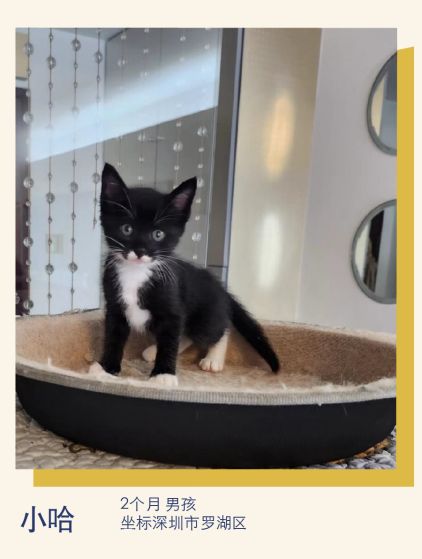其他信息:小哈是一只「流二代」,它的妈妈因为意外不在了,它不小心掉到狭窄的废弃排水管里,在没吃没喝的状态下努力坚持呼救了3天,最终被我和一位邻居合力用工具救了上来,在整个营救过程中它非常地配合。经过一段时间的相处中,我发现小哈不仅生命力顽强,性格也非常友善,它真的值得拥有一个温暖的家!