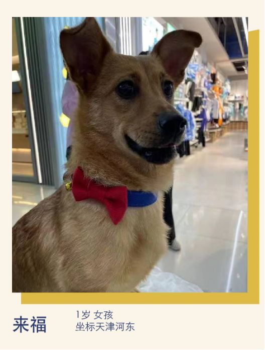 其他信息:来福是一只性格温顺、聪明的狗狗,被救助后已经完成了疫苗绝育,它总是用充满信任和好奇的眼神望着你,希望能找到一个真心实意对它好的人。