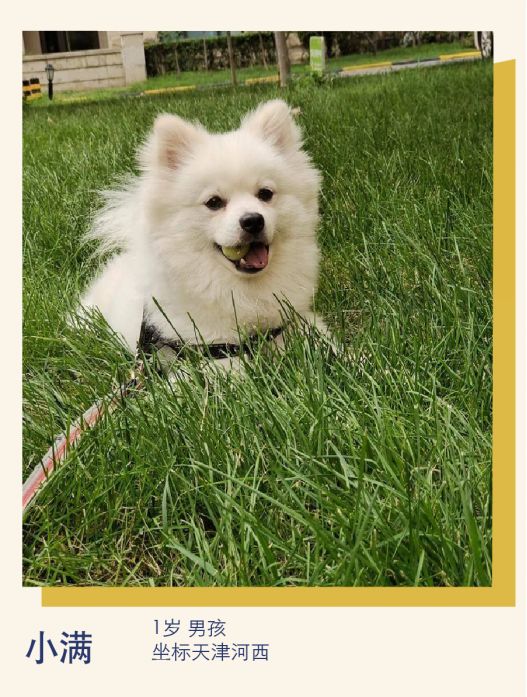 其他信息:小满是个阳光快乐的一岁小男孩,性格单纯,温柔友善,特别期待收获关注,无论跟它怎样玩都特别开心。很懂事,出去遛狗时跟随得很好,定时排便,是一只自律狗狗。期待一位有耐心的主人,和小满共度以后的快乐生活。