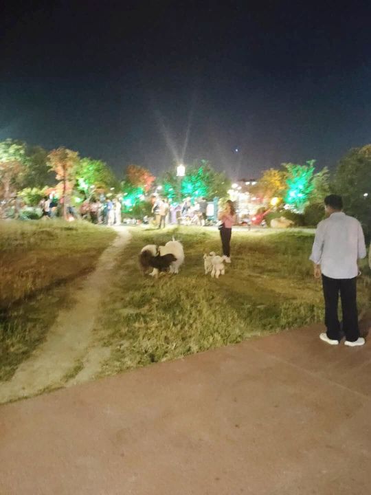 公园内多只宠物狗未拴绳