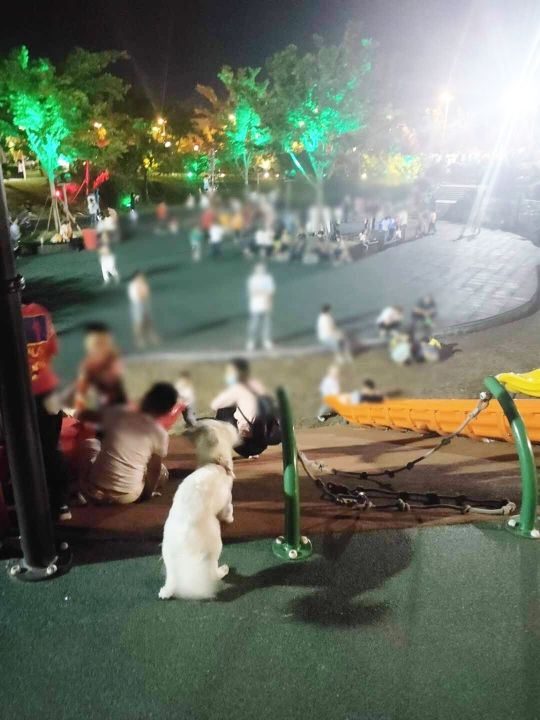 6月5日晚8时,记者来到大水湾体育休闲公园探访。在公园步道和儿童游乐场内满是大人与孩子的身影,同时也见到多只自由走动或奔跑的宠物狗,这些狗狗都没有拴绳。部分宠物狗在步道上独自晃悠,看不到狗主人,有遛狗市民将牵引绳拿在手上,低头看手机或与其他市民聊天,狗狗离他们至少几米远。公园内有大小宠物狗之间撞见后相互打斗,还有的宠物狗看到经过的市民会跟着走,带孩子的家长们都很警惕,看到有狗过来都护着孩子避开。