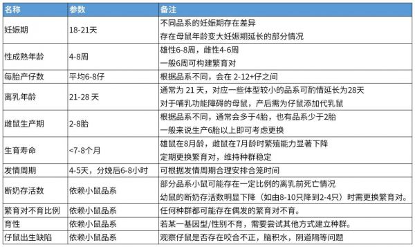 向小鼠来源机构(实验室/供应商)了解小鼠繁育特征。小鼠的基本繁育信息可见下表: