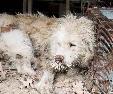 流浪狗被豪猪袭击,尖刺深深扎进鼻子,这样子看着都痛