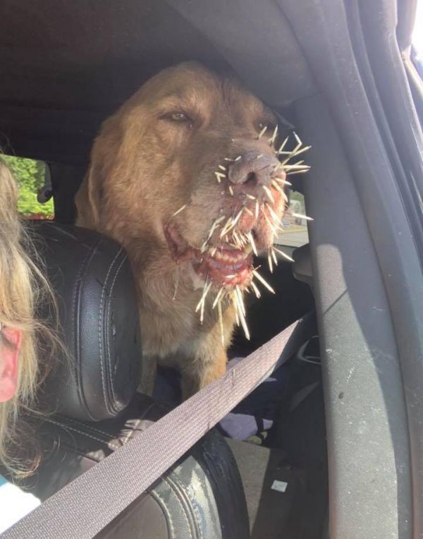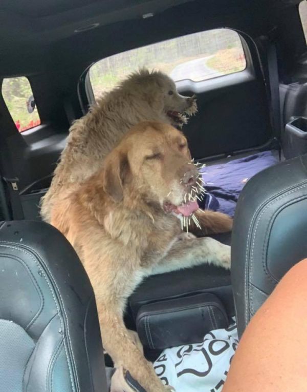 不清楚两只狗狗是被豪猪袭击,还是主动出击,但经历过一次之后,相信它们看到豪猪都会绕道走。